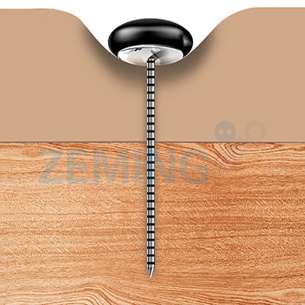 Description:When anchored with a spring lock washer, the Threaded Nail is a fast, positive, alternative to prong tufting. Just the nail through the upholstered construction and fasten in on the back with a spring washer. Deep threads are designed so spring washer slides on easy, yet can’t pull off. Nail is rigidly welded to collet.
